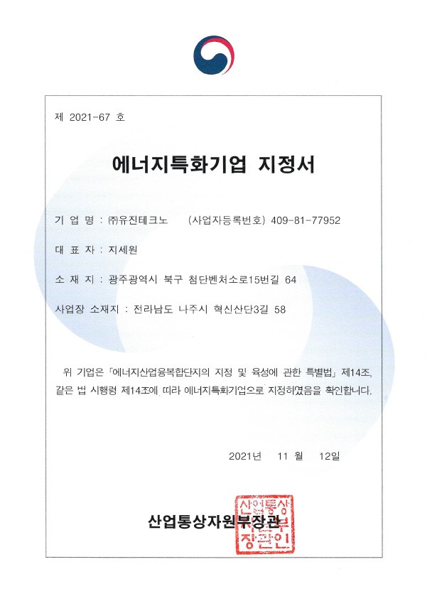• 에너지-특화기업-지정서