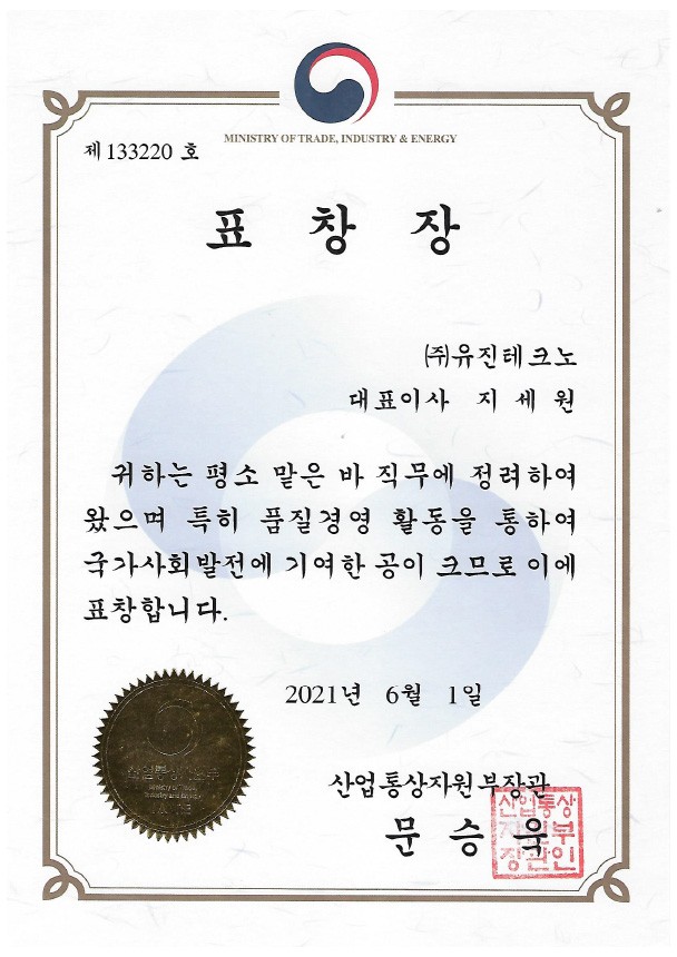 • 산업통상자원부장관-표창장