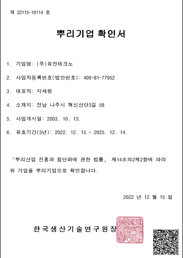 • 뿌리기업-확인서