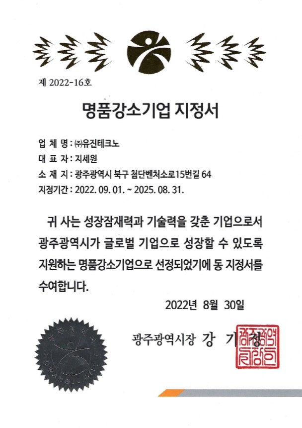 • 명품강소기업-지정서