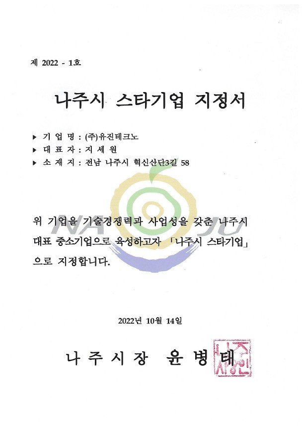 • 나주시-스타기업-지정서