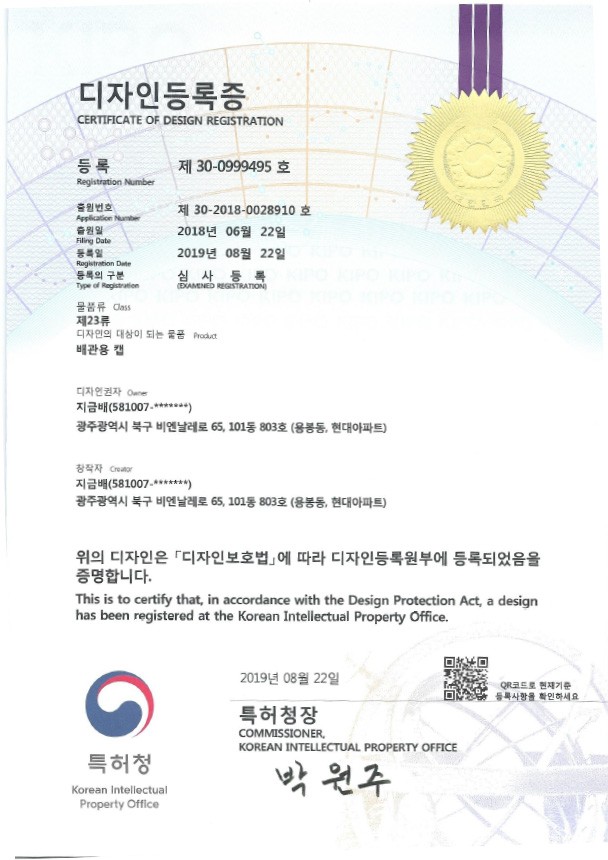 • 디자인등록증(제30-0999495호)